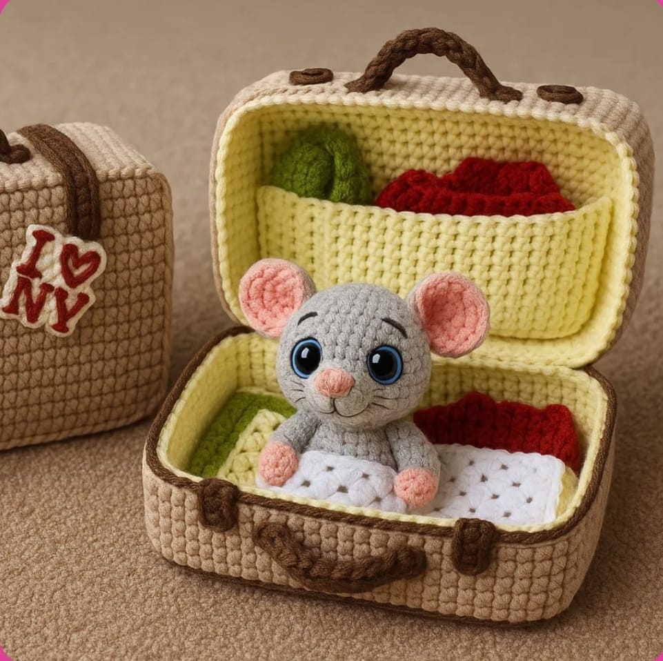 Pequeñas valijitas amigurumi con sorpresas irresistibles que derriten corazones: perfectas para regalar con emoción, vender con originalidad o simplemente volver a tejer con magia 💖