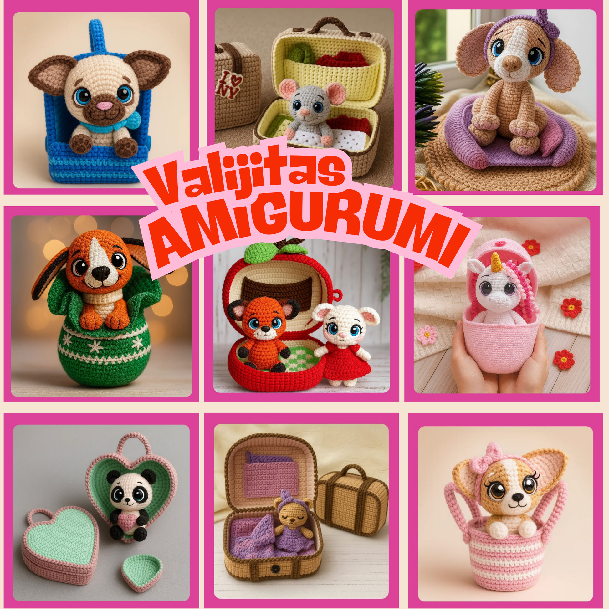 ✔️ 10 patrones digitales de valijitas amigurumi